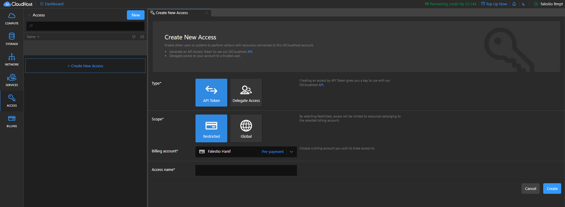 Namun, IDCloudHost menyediakan API yang dapat digunakan untuk mengelola setiap sumber daya, termasuk membuat dan menghapus VM.